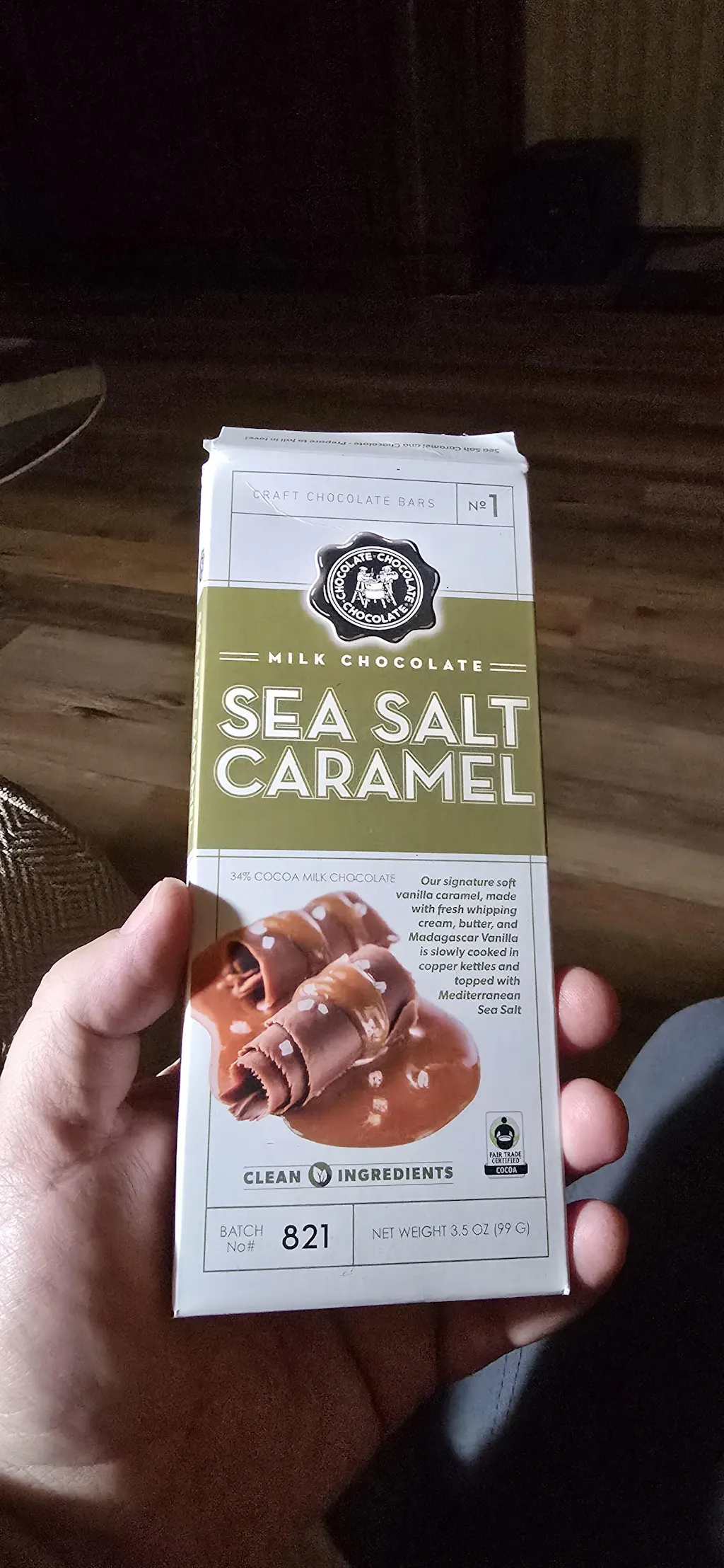 INGREDIENTS: Milk Chocolate (Fair Trade Certified™ Cane Sugar, Milk Powder, Fair Trade Certified™ Cocoa Butter, Fair Trade Certified™ Chocolate Liquor, Soy Lecithin – an Emulsifier, Natural Flavors), Corn Syrup, Fair Trade Certified™ Cane Sugar, Fair Trade Certified™ Invert Sugar, Grade AA Butter, Fresh Whipping Cream, Fresh Whole Milk, Salt, Vanilla, Mediterranean Sea Salt